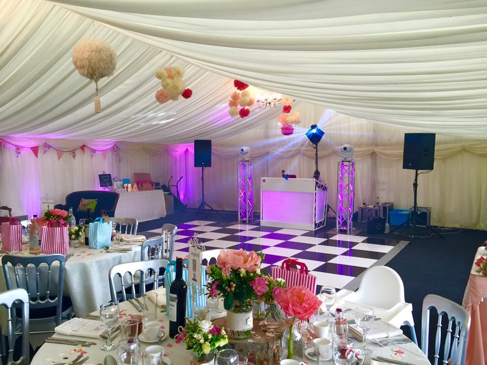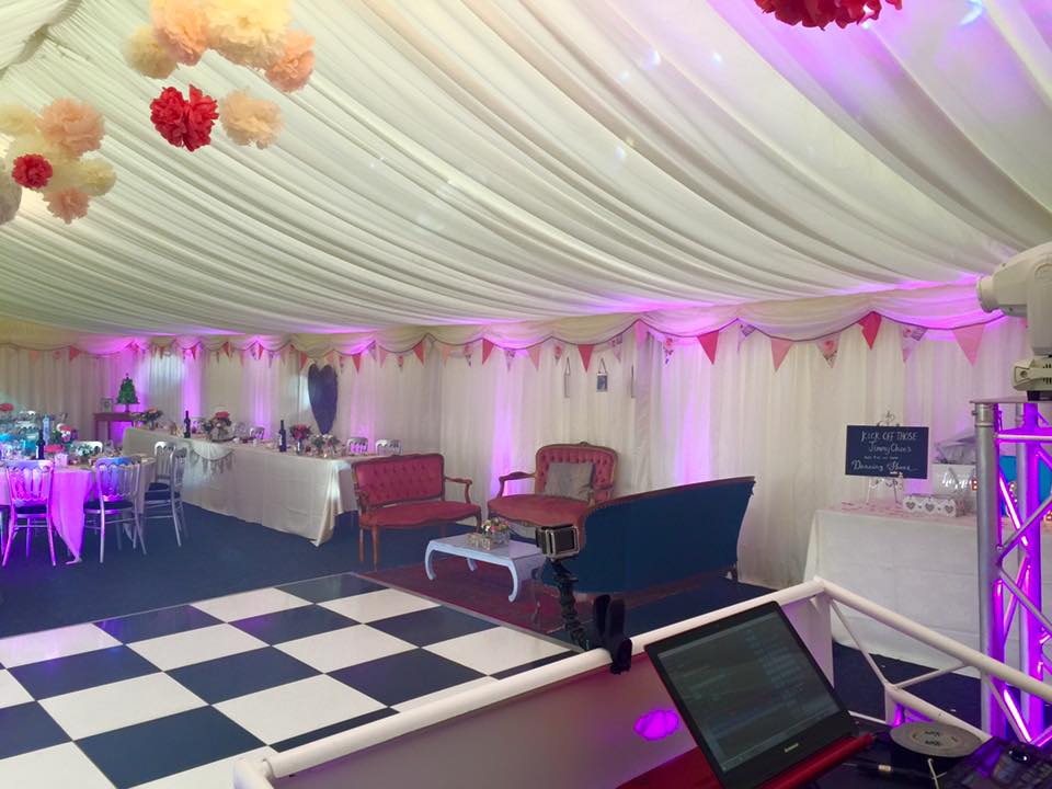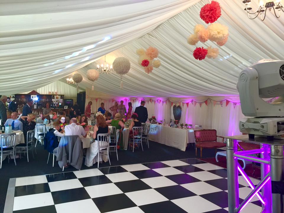 We can also provide one of our plain, starlit or chequered dance floors if required, the ideal size for this venue is 16×16.