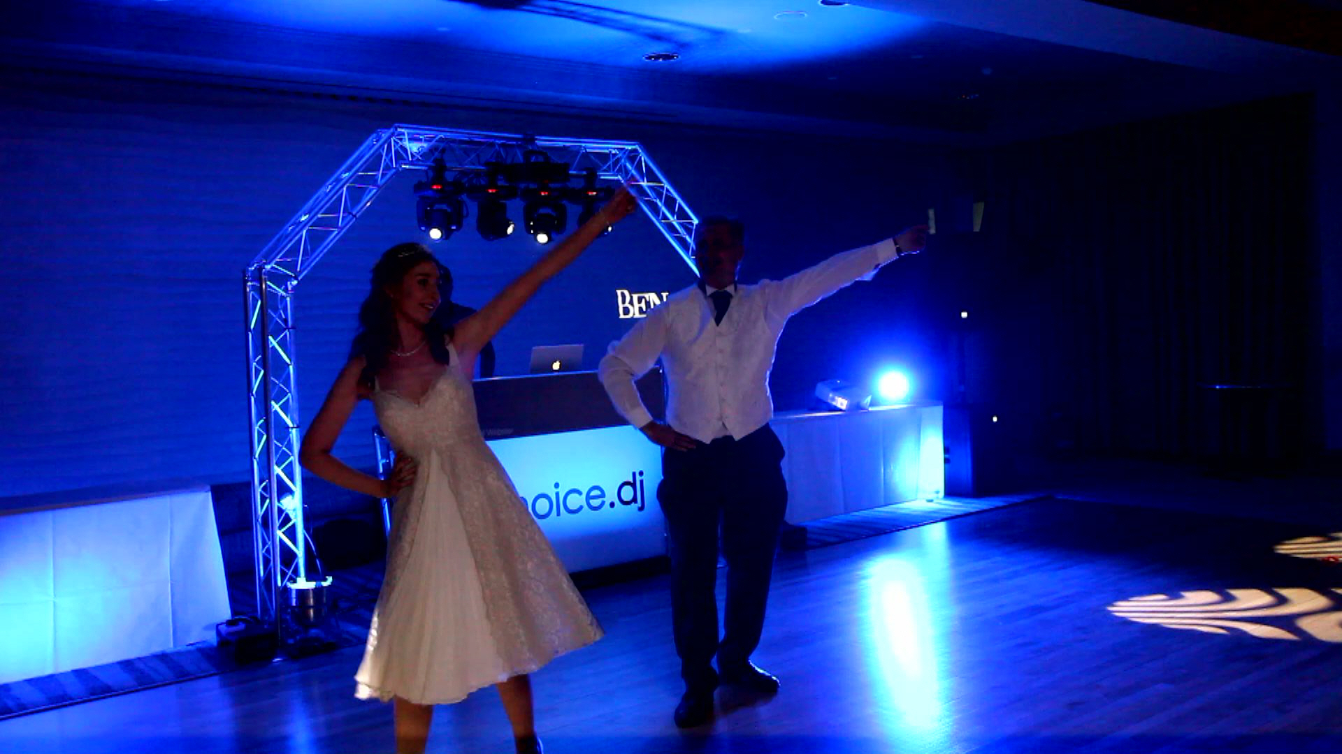 Jo surprises guests with a father/daughter dance with a difference. As Stevie Wonder abruptly cuts into Gangnam Style, people assume DJ Phil Webster has made a mistake as the brides turns in disbelief …but it turns out to be a secret dance routine for the bride and her father.